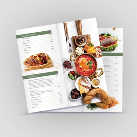 Restoran ve kafeler, ürünlerinin sunumu sırasında bazı görsel araçlara gereksinim duyarlar. Menüler üzerinde yer alan yiyecek, içecek ve benzeri ürünlerin fotoğraf ve fiyatlarının yanı sıra özellikle içerikleri hakkında da kısa bilgilerin yer alması, sade, temiz, ferah bir tasarım ile sunulması önemlidir.